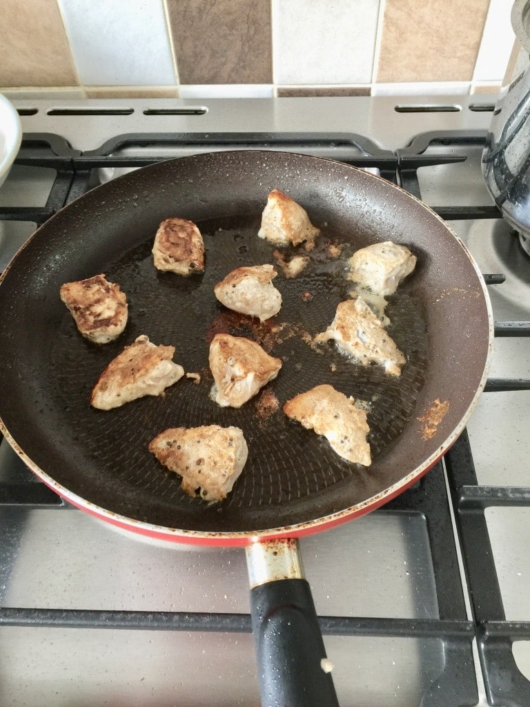 - Now it's time to cook your chicken. I have tried cooking it on the griddle pan, under the grill and simply browning it in the frying pan which is my personal favourite as it's the quickest way and gives me the most control. Cook your chicken until nicely browned all over and cooked through. Remember not to overcrowd the pan so that it sears instead of stewing. You will have to do it in small batches.