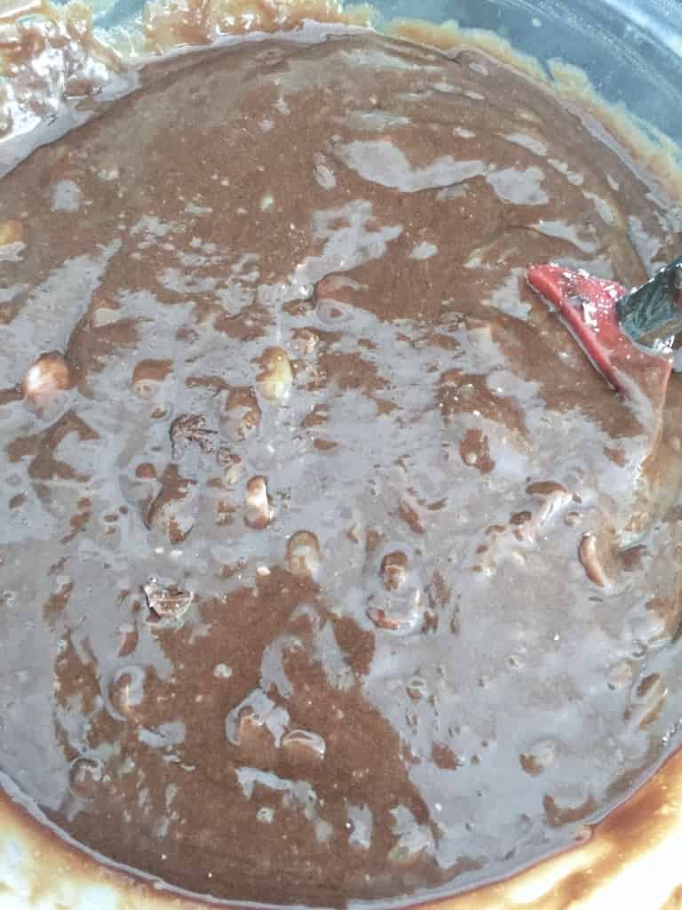 • Pour in slightly cooled chocolate & butter mixture and give it a light mix.