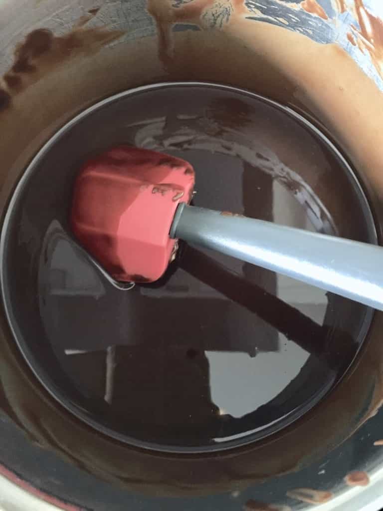 Chocolate Banana Cake - chocolate & butter in the saucepan being mixed