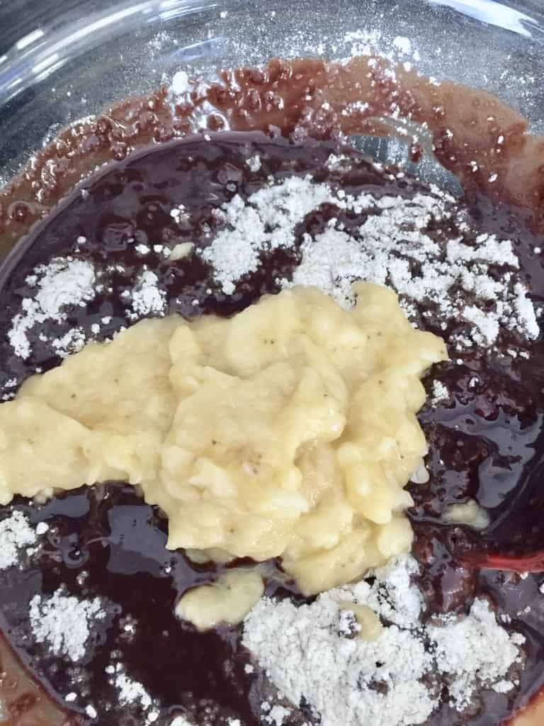 Chocolate Banana Cake - smooth melted chocolate & butter mixture