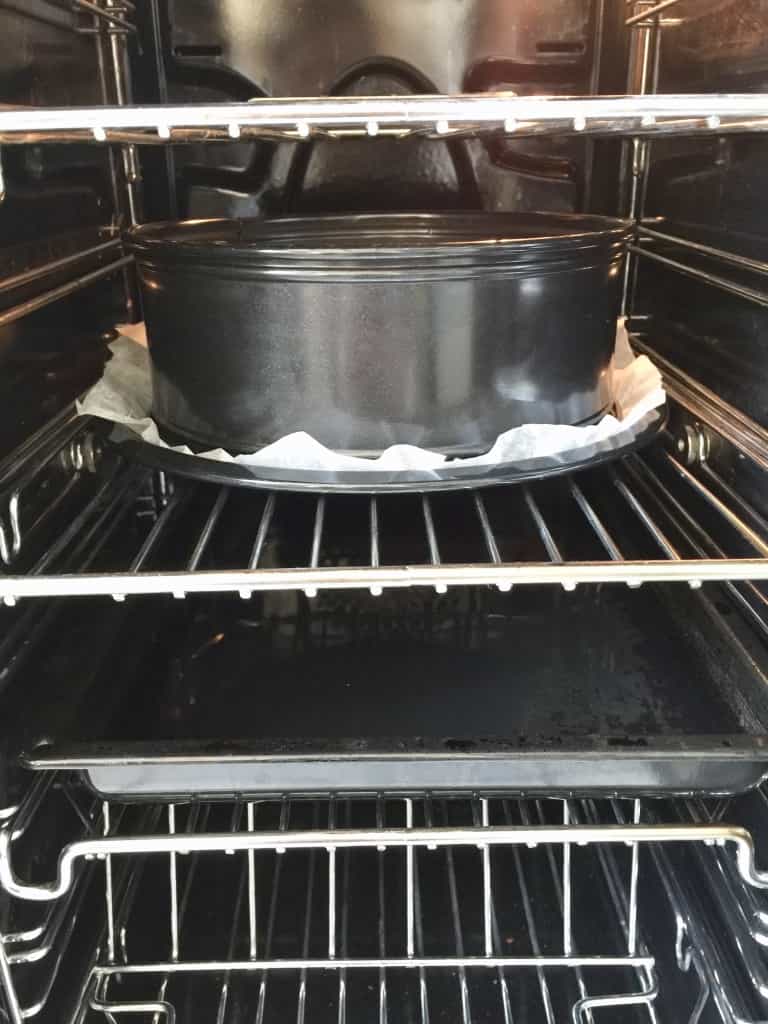 - Bake cheesecake in the water bath (see the post above) in 150°C/300F/Gas Mark 2 for about 50-60 min. There should be a little wobble still in the middle of the cheesecake but it should feel firm to the touch. Let your cheesecake cool inside the oven with the door slightly ajar. Once cool, chill it well in the fridge for couple of hours but preferably overnight.