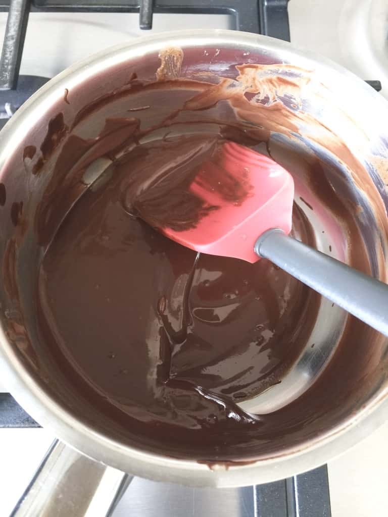 - Melt chocolate gently in a pan (mixing constantly to prevent it from burning) or in a bowl placed over the pot with simmering water (bain marie). Cool slightly.