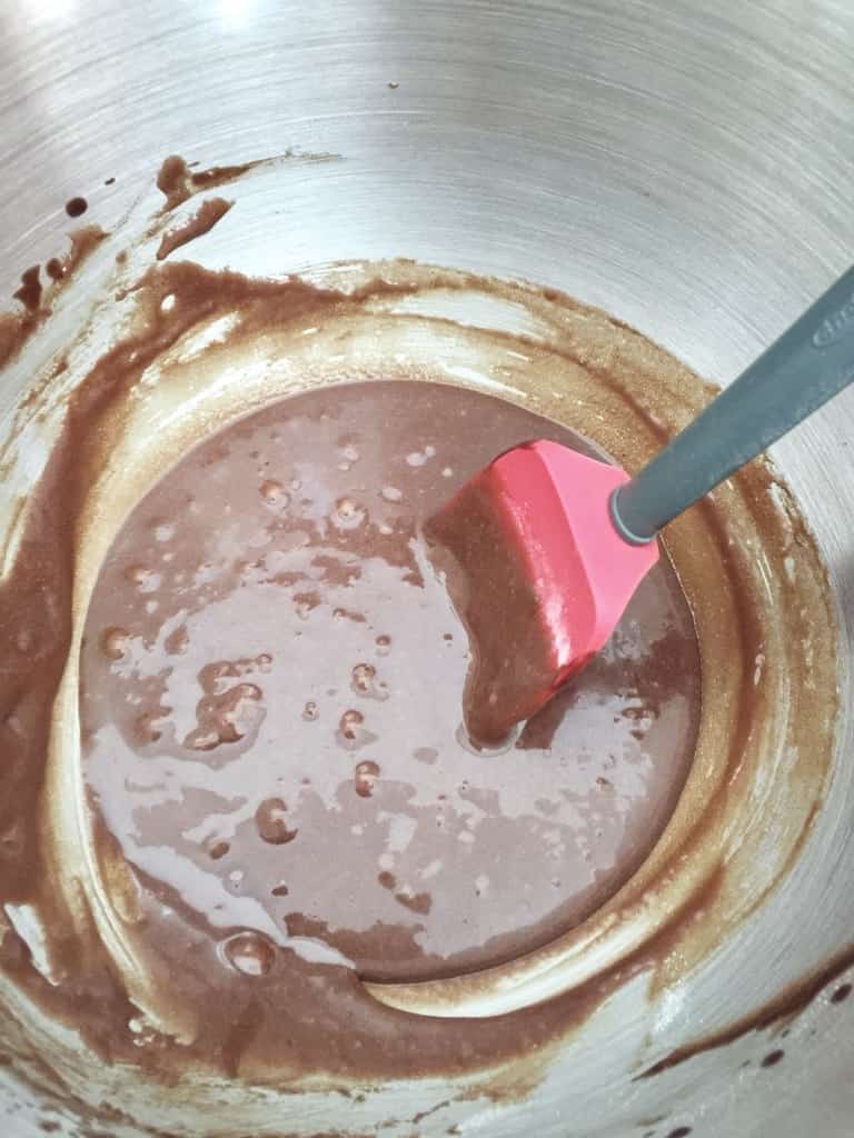 - Slowly start adding melted chocolate until incorporated.