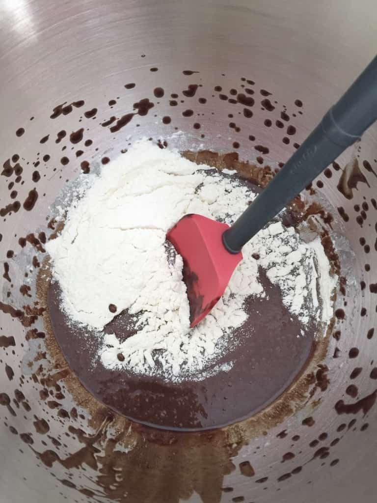 - Add sieved flour and fold it in gently with spatula until just incorporated. Do not overmix.