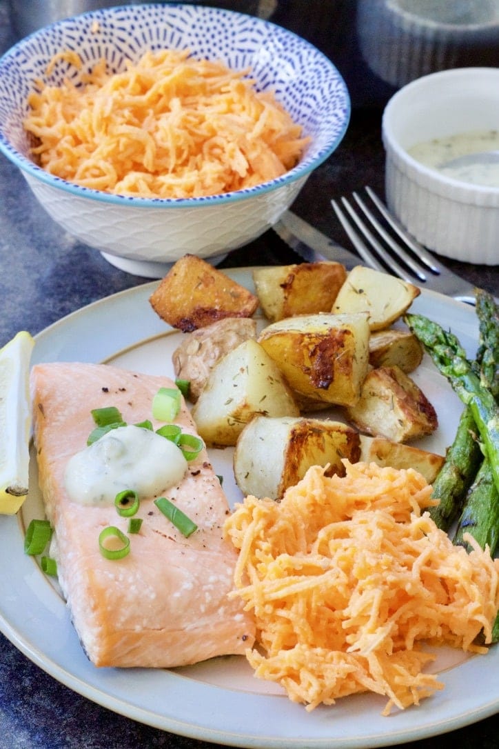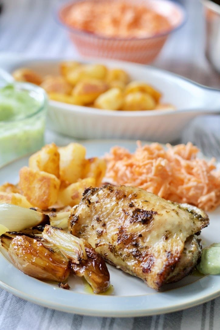This salad will go marvellously with my Easy One-Pan Salmon & New Potatoes Bake and also this Roast Chicken with Wild Garlic Pesto & Shallots . Or try it alongside sliders made with my Instant Pot BBQ Pulled Pork or with these Vegetarian Sausage Rolls.
