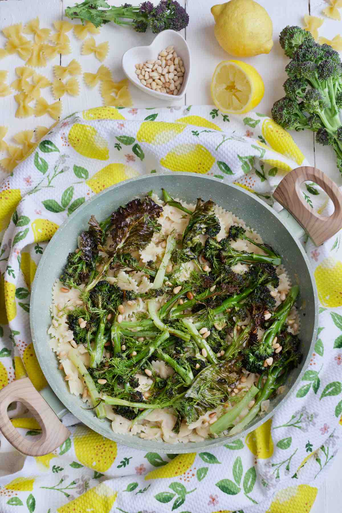 Top your pasta with roasted purple sprouting broccoli or any other veg of your choosing, sprinkle some toasted pine nuts, fresh dill and serve.