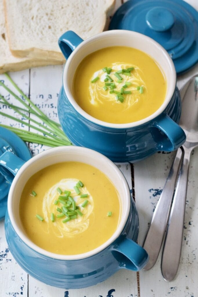 This lovely soup is naturally vegan (if you make it with vegan friendly veggie stock) so if you want to keep it that way simply swirl a little bit of plain vegan yogurt of your choice (coconut one works really well) and finish by sprinkling over some chopped chives or parsley. Alternatively, creme fraiche or natural dairy yogurt can be used as non-vegan alternatives.