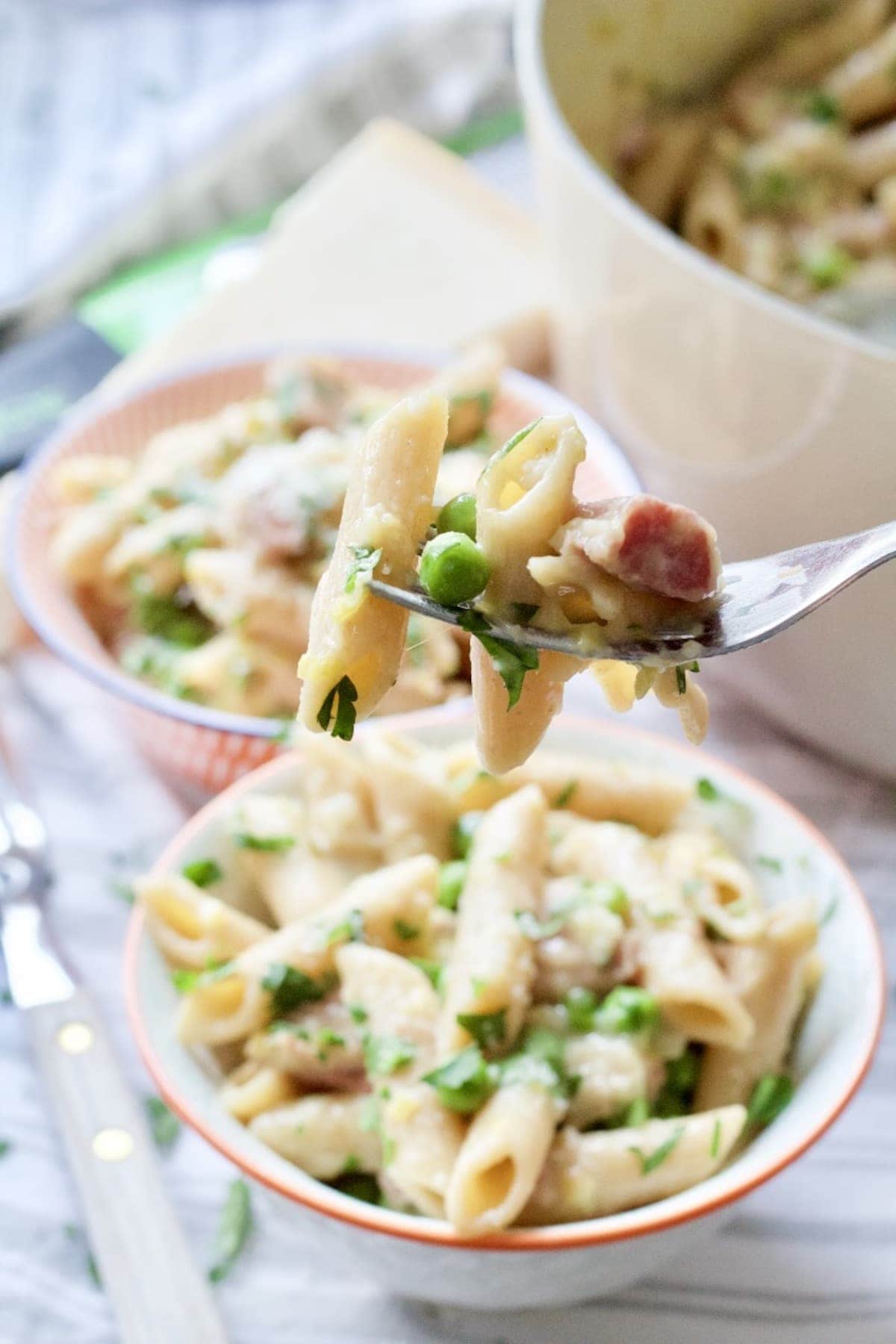 Who doesn't like quick, easy and delicious dinners with minimum hassle and washing up? What if they also helped you clean your fridge of any leftovers? This One Pot Leftover Ham and Pea Pasta ticks all of those boxes plus it will be on your table in mere 30 minutes!
