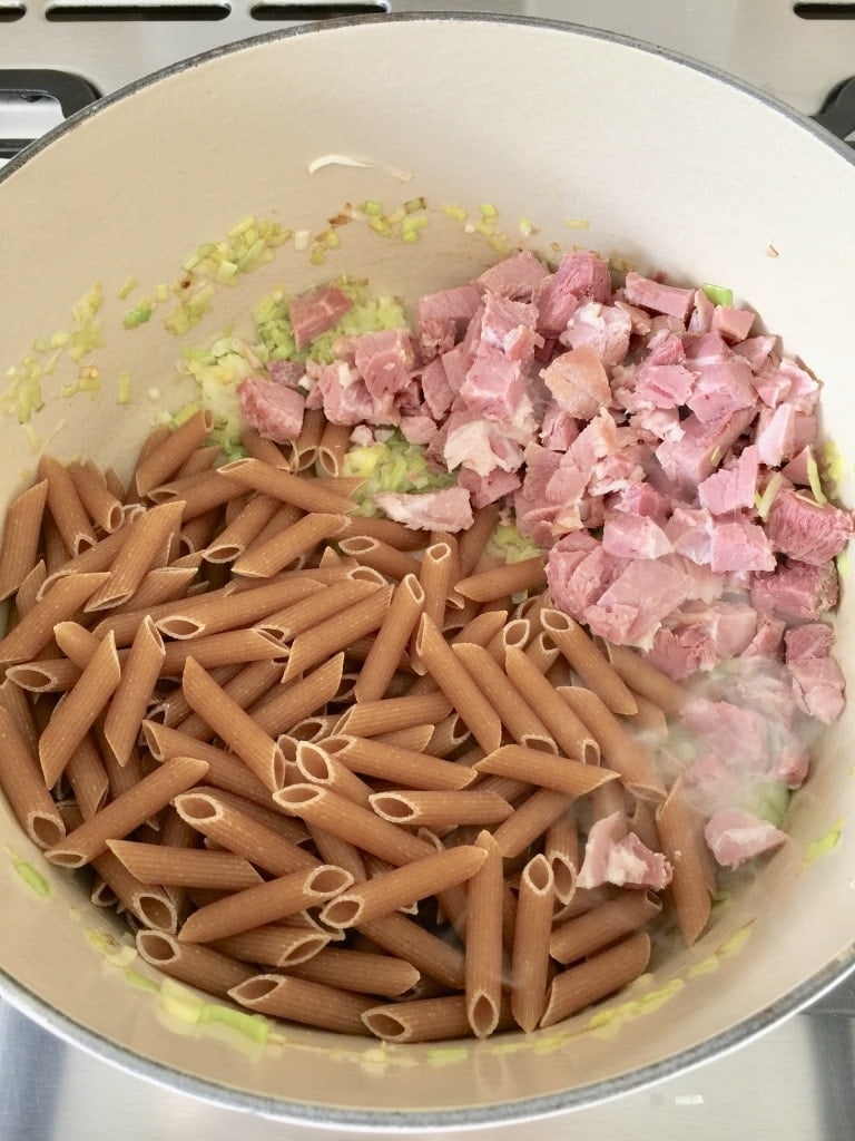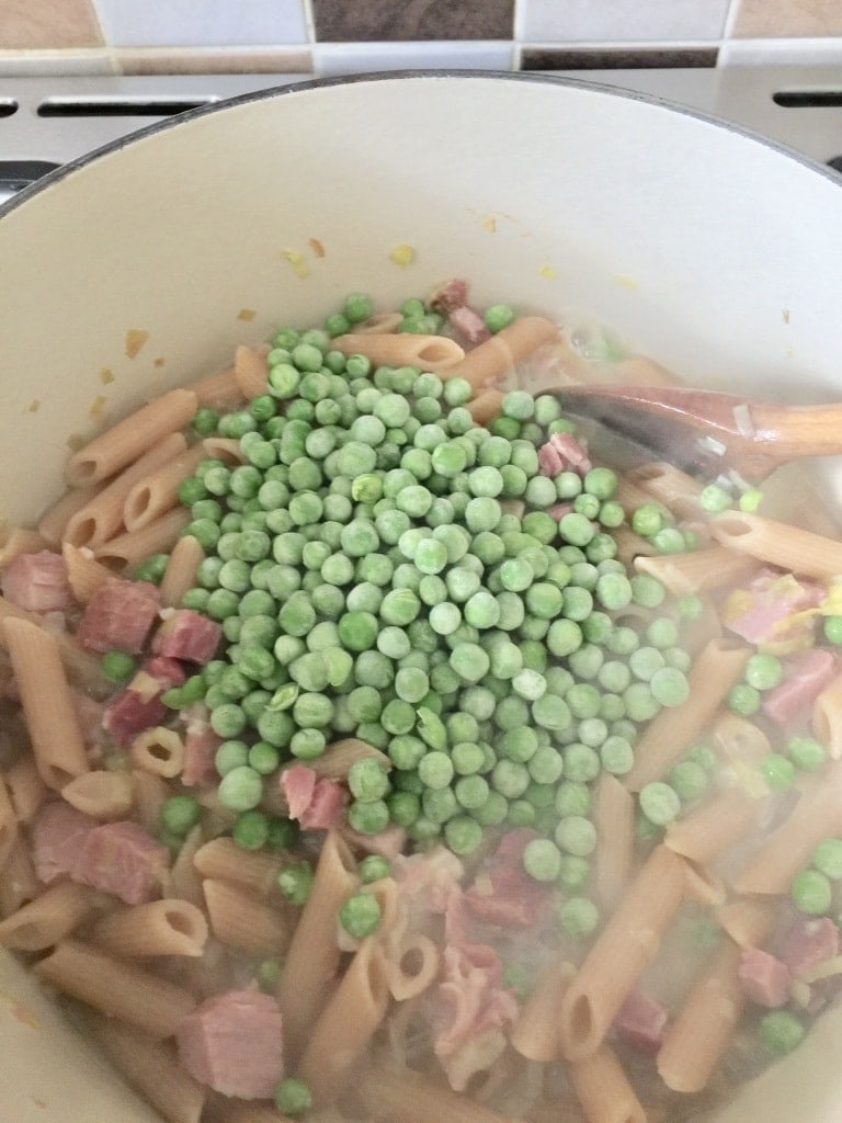 One Pot Leftover Ham and Pea Pasta Step By Step Instructions