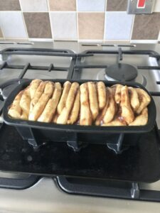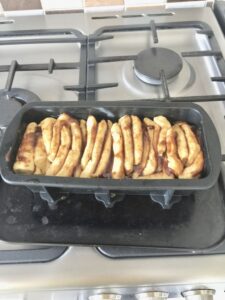 - Place your 6 pieces "standing up" snuggly in your loaf tin and leave it covered for second proving (approx. 30 min). Bake in 180C/350F/Gas Mark 4 oven for approx 40 min. If you don't want your loaf to be too brown simply cover it with aluminium foil during first 20 min of baking. Once baked let it cool slightly in a tin before turning out and enjoy whilst still warm!