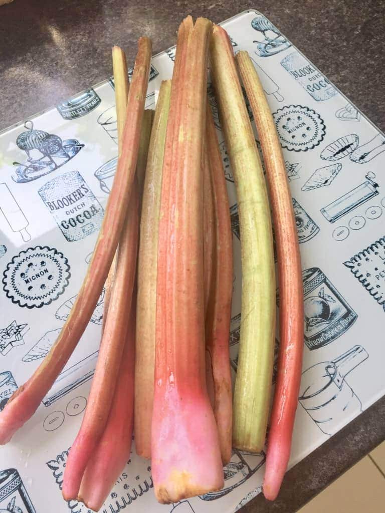 - 500 g rhubarb cleaned and cut into 2 cm chunks