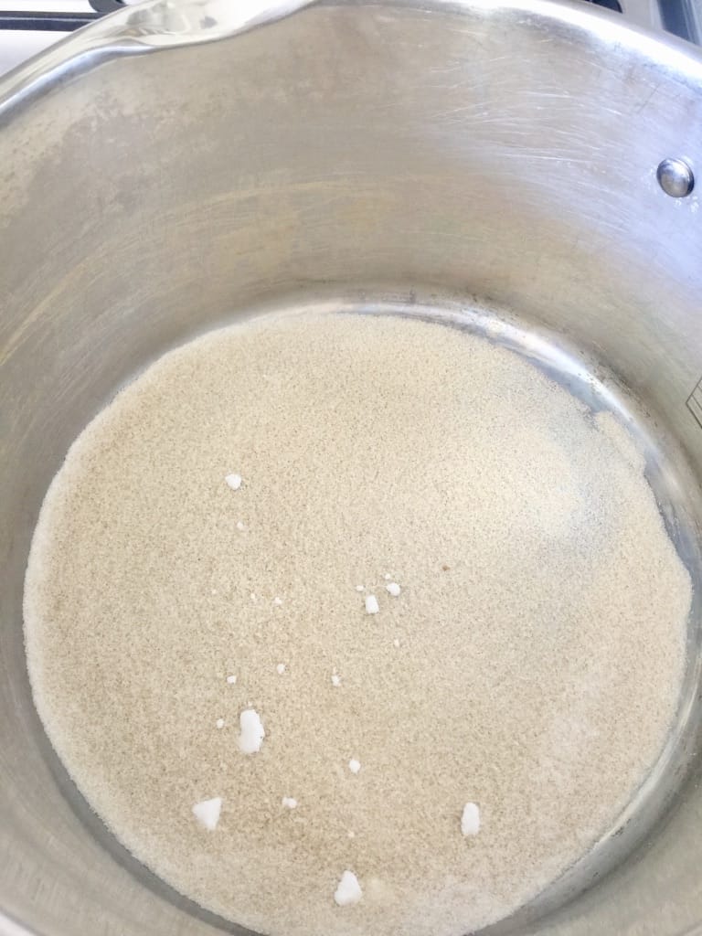 - Pour in the water and give it a mix. You might need to scrape hard cluster of caramelised sugar off your spoon. Cover the pan and let it come to gentle boil (it will take roughly 20-25 min). Give it a stir now and again to prompt those sugar clusters to melt. They should be completely dissolved by the end of cooking. Taste and adjust the amount of sugar as required.
