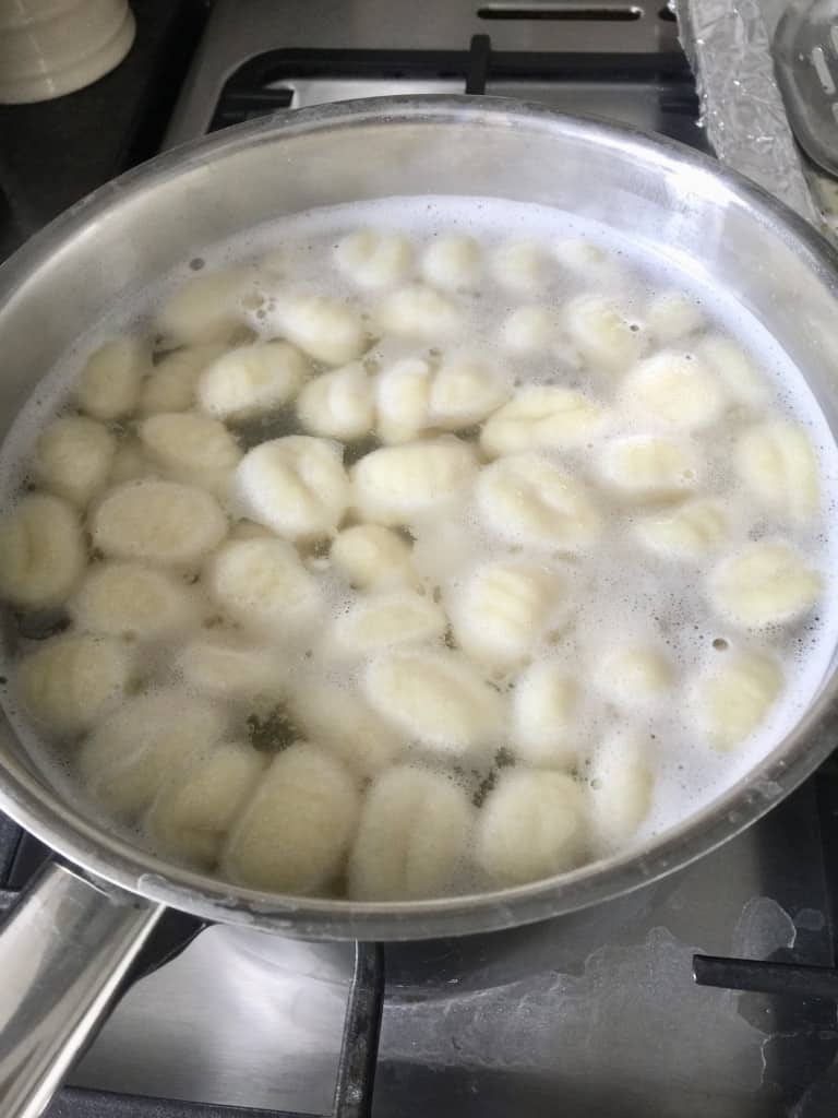 Easy Butternut Squash & Chorizo Gnocchi - gnocchi boiling in a pan of salted water